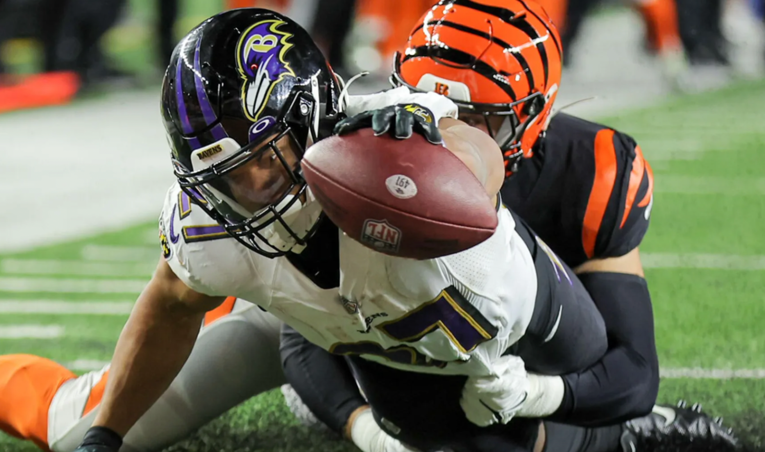From that moment on, the Roman Empire with his job on the line, had to find a way to expose a one time assistant of Boy Wonders. Even if they failed to catch Eli Apple on one play, it was still good enough to get deep into Bengal territory. Then on 3rd and Goal, JK Dobbins efforts on that drive would be rewarded. Marylander: “Huntley looking to throw, he’s gonna throw it out to the flat, it is caught by JK Dobbins, and he will get to the 1 yard line, AND IN! TOUCHDOWN RAVENS! JK DOBBINS! Catches it on the right side, and goes into the endzone!” Narrator: All of a sudden this was a ball game again. Like most AFC North showdowns the intensity was at a fever pitch. How can this get crazier? Marylander: “Burrow is in the shotgun, the Ravens are coming again, he’s gonna have to roll to his right, he throws it out to Hayden Hurst, Hurst has it at the 40 yard line gets his way to the 45, and he’s decked to the ground, IT’S A FUMBLE! IT’S A FUMBLE! It’s on the ground, and it’s picked up!” Poe: Whistling (Please be in our hands) Edgar: Whistling (Hurst has butterfingers) Allan: Whistling (It’s ours!) Marylander: “Yes, YES! (Hamilton Theme playing) LETS GO BABY! THE RAVENS HAVE THE BALL! YES! Yes!” Narrator: That’s a momentum shifter alright. Hayden Hurst, the former Raven, was robbed by Kyle Hamilton like a thief in the night. This key mistake by Cincy allowed Baltimore to kick a field goal right before the half to go into the locker room with a one point lead. (Imagine saying that leading up to the game) And they’ll get the ball to start the half. However Lou Anarumu did make some adjustments. In the 2nd Half JK had little room to run. That was the key for the Bengals to get momentum back. Then came a play that gave every Ravens fan PTSD of Big Ben. Marylander: “Burrow is gonna throw it, no he’s gonna get trapped, oh god Roquan you gotta, YOU HAD HIM ROQUAN! YOU HAD THIS MAN AND YOU LET HIM! CRUD!” Narrator: That was a killer. Because the Bengals would take advantage of it, and get the lead back in no time. And they’ll get Marcus Peters to commit another huge penalty on the 2 point conversion thank you very much.