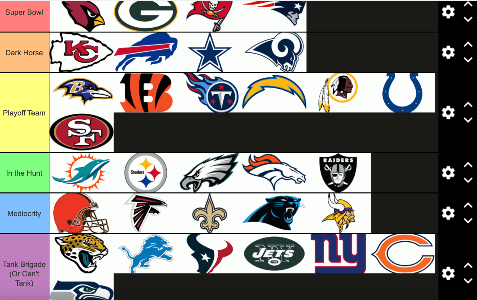 For the images now for Weekly Recaps, I’m doing a tier list based on where I think the teams are at the end of each week. You can thank a couple of my friends from Penn State for that idea. Anyways all I know is that its another crazy week in NFL, and there is nothing quite like it.